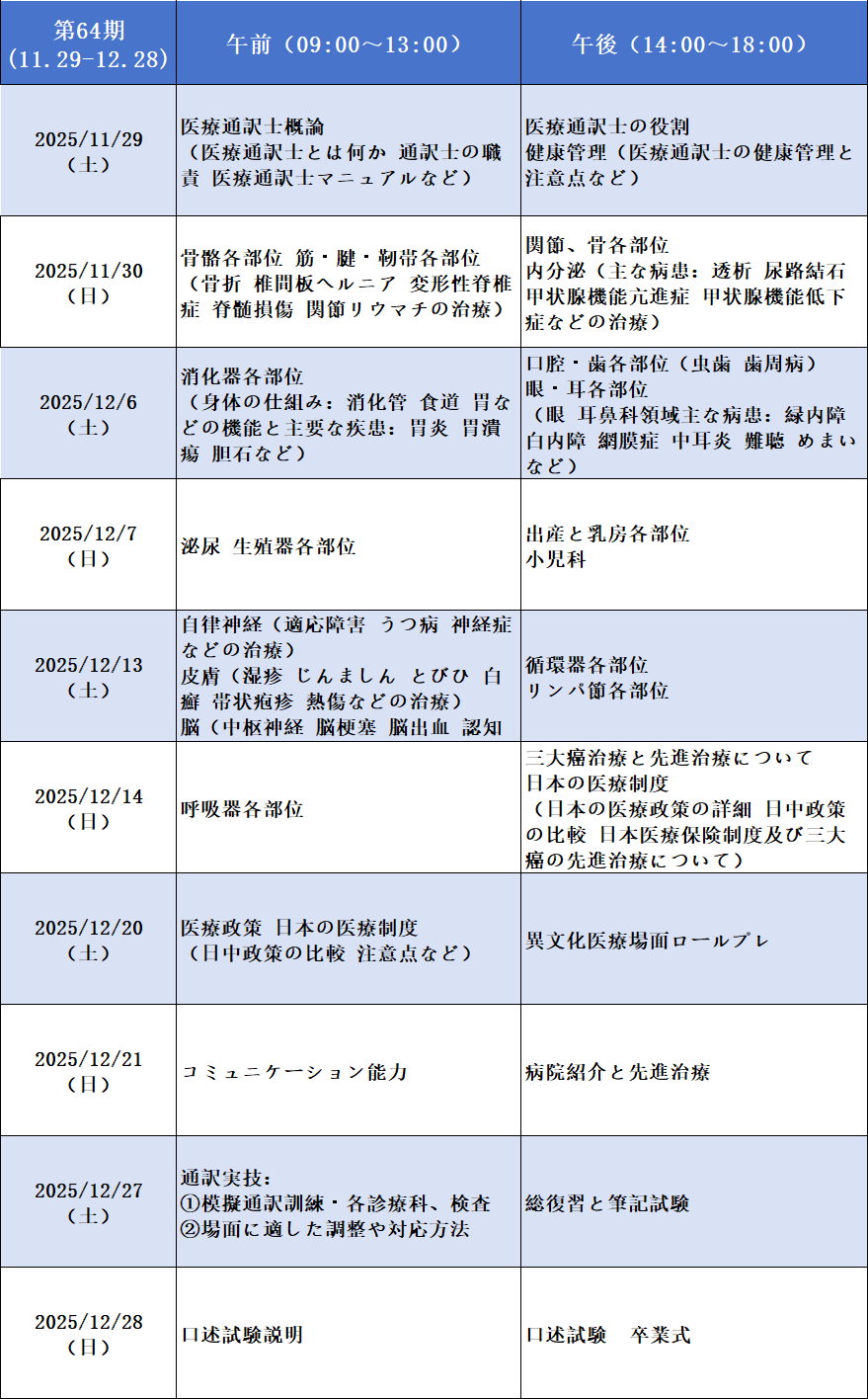 - 中国語医療通訳士一級養成講座は、厚生労働省の規定により育成カリキュラムを用いた研修形式で行われます。 研修時間は1クラス基本90分の50クラス以上で、少人数(20人程度)のセミナー形式です。 講座が終了したときに筆記試験と口述試験を行います。筆記試験に合格すると、医療通訳士一級修了証明書(試験合格証)を授与します。口述試験に合格すると、医療通訳士一級通訳カードを発行します。
